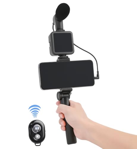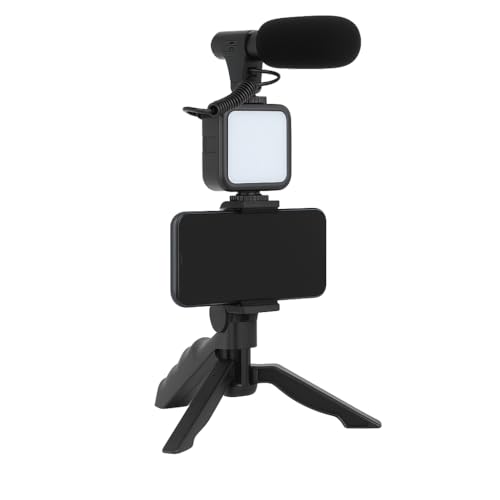 Generic - حامل هاتف محمول مع إضاءة LED وميكروفون، طقم تصوير احترافي، مع حامل ثلاثي وإضاءة مربعة 6.5 سم × 6.5 سم، أسود pk-771