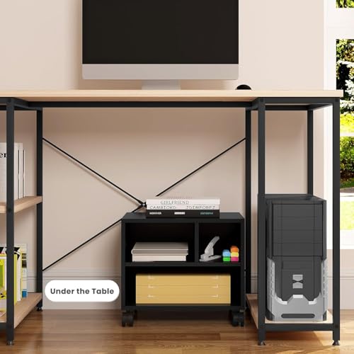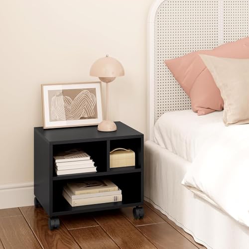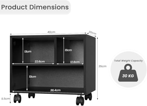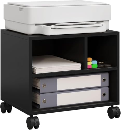 Generic - طاولة طابعة متحركة بعجلات، أسود، مع رفوف تخزين، منظم مكتبي