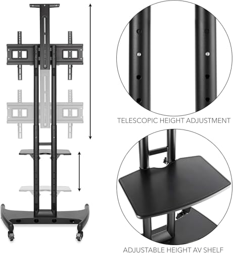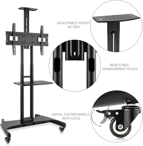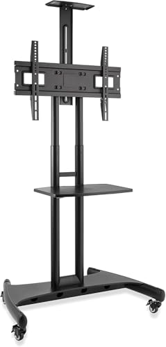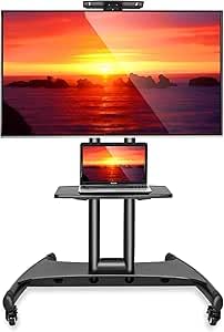Generic - حامل تلفزيون متحرك بعجلات بارتفاع قابل للتعديل ورف لاب توب، لون اسود، حامل تلفزيون دوار