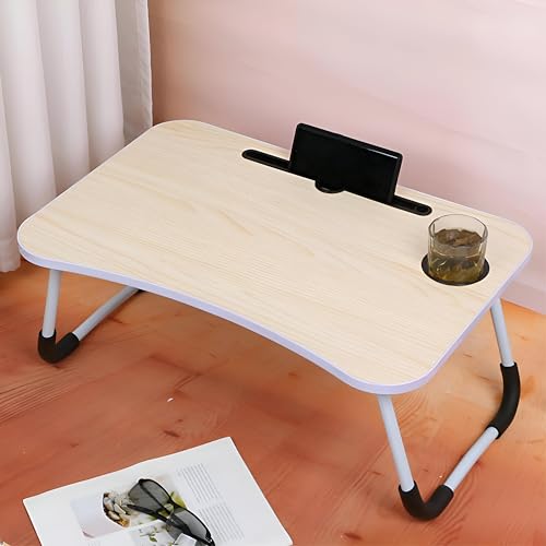 Generic - طاولة لاب توب خشبية متحركة بأرجل قابلة للطي مع فتحات للتابلت والنوت بوك لجلسات عمل مريحة ومحمولة في أي مكان
