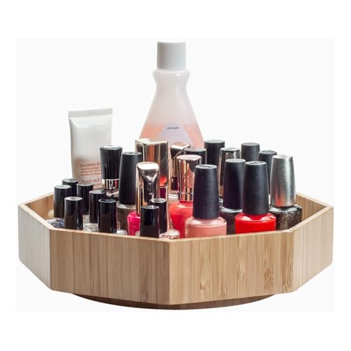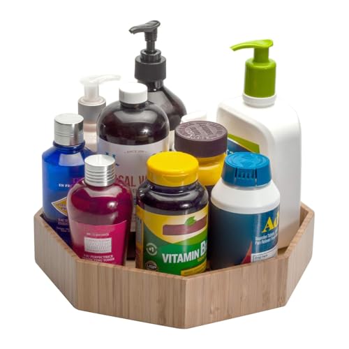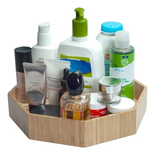 MobileVision - موبيل فيجن صينية دوارة 360 درجة من الخيزران لادوات الزينة ومستحضرات التجميل لسطح الطاولة وطاولة مع قرص دوار ليزي سوزان بقطر 10 انش حافة 2 بامبو متعدد الألوان