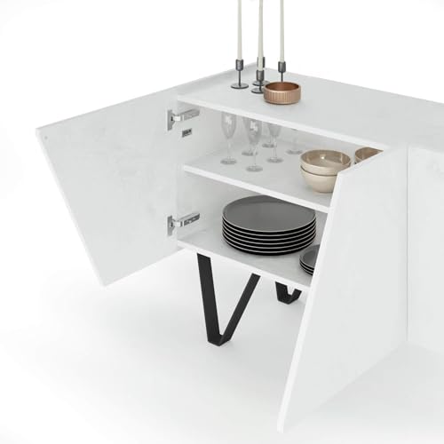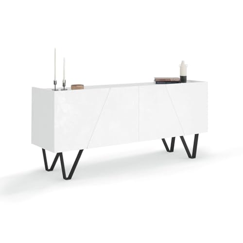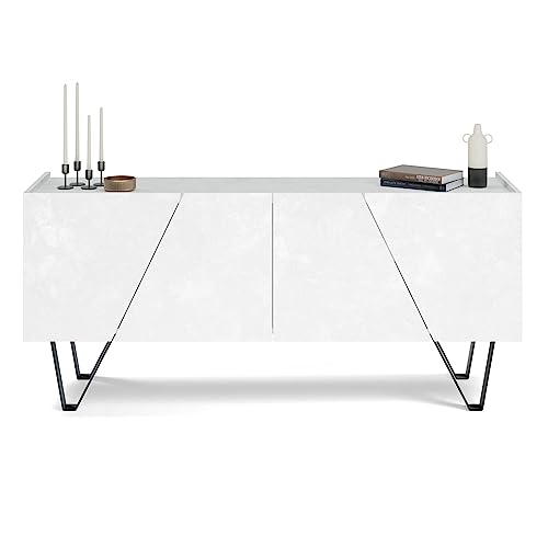 Mobili Fiver - وحدة بوفيه ايما بأربعة أبواب وأرجل سوداء، تصميم بنمط خرسانة بيضاء، مطلية بالمينا/الحديد، صنعت في إيطاليا من موبايلي فيفر، خشب مُصنع