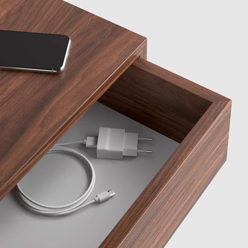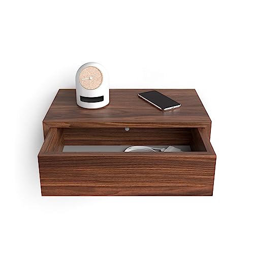 Mobili Fiver - طاولة جانبية ريكاردو معلقة من موبايلي فيفر بلمسة نهائية الخشب الرقائقي بجانب السرير حديثة أثاث إيطالي لون خشب الجوز 45×25×15.5 سم