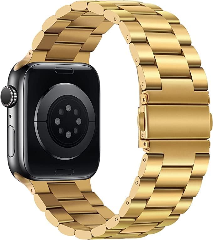 Mobilic - جراب ساعة من الستانليس مع سوار متوافق ابل 44 ملم وساعة اي ووتش السلسة 6-5-4-اس موبايلك ذهبي