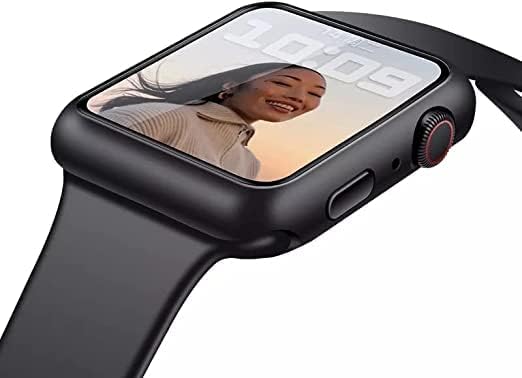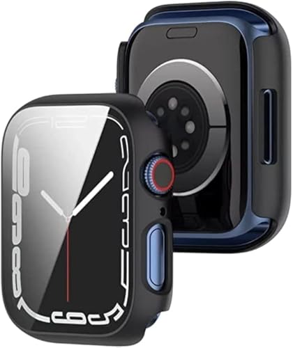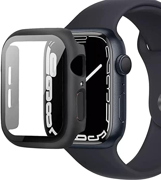 Mobilic - حافظة + شاشة حماية من موبايلك متوافقة مع سلسلة اي ووتش 7 زجاج مقوى مقاوم للخدش للساعة لون اسود 45 ملم