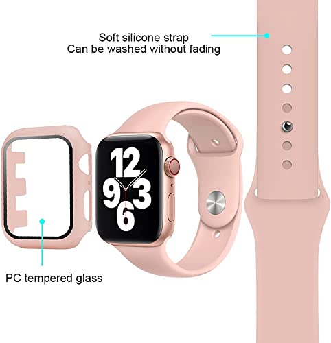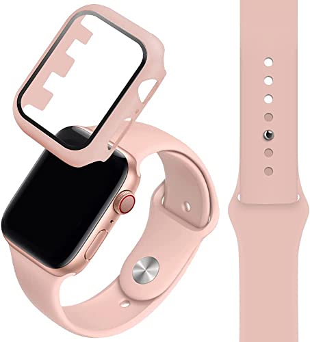 Mobilic - سوار بديل لساعة ابل 40 ملم من موبايليك،، سوار الساعة مع غطاء واقي للشاشة مقاوم للكسر، سوار رياضي قابل للتعديل وقابل للاستبدال، لسلسلة ابل اس اي/6/5/4/3/2/1. بينك، بني