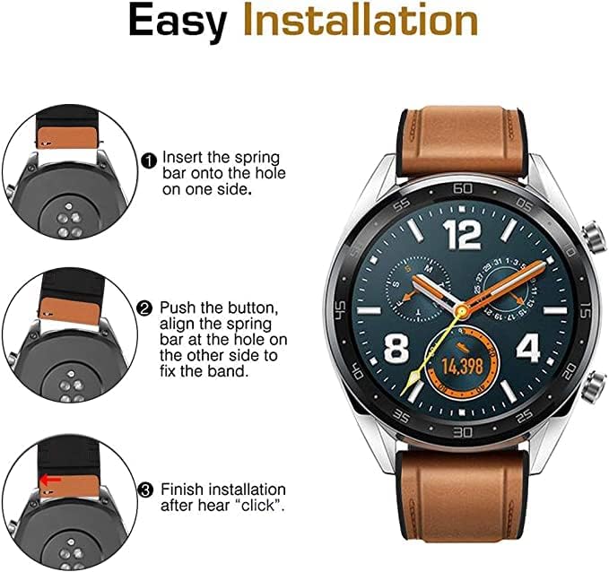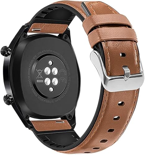 Mobilic - سوار ساعة من الجلد الطبيعي والسيليكون سريع الفك موبيليك متوافق مع هواوي Gt-Gt2 مقاس 46 ملم لسامسونج جالاكسي ماجيك - ووتش برو 22 بني للجنسين
