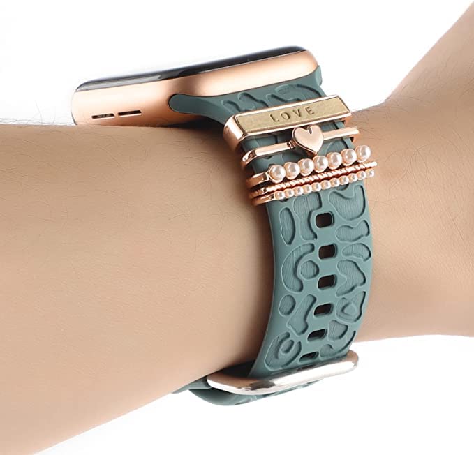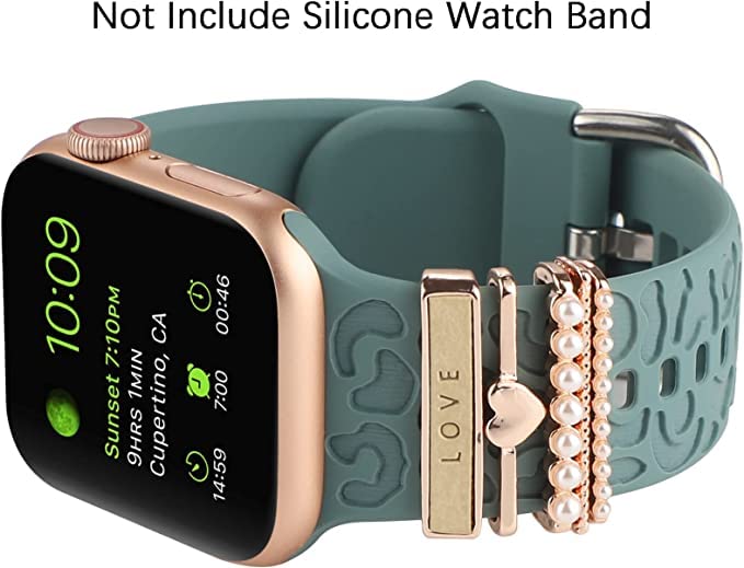 Mobilic - اكسسوارات زينة حلقية الشكل متوافقة مع اساور ساعة ابل السيليكون 38/ 40 /41 / 42 / 44 /45 ملم واي ووتش سلسلة 8/7/6/5/4/3/2/1 من موبايليك، دلايات معدنية لامعة لسوار الساعة، بني، للنساء