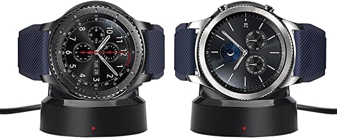 Mobilic - شاحن لاسلكي بديل لساعة جير S3 من موبيليك- حامل للشحن مع كابل USB سامسونج جالاكسي كلاسيك (-R770) وفرونتير (-R760 / R765) للساعات السمارت، اسود