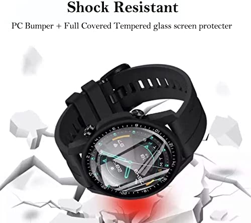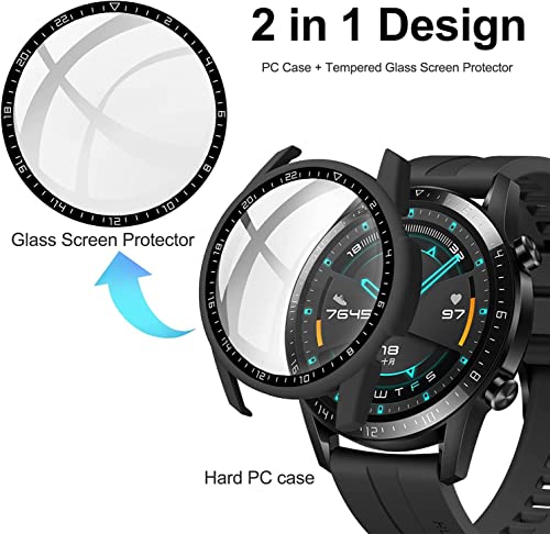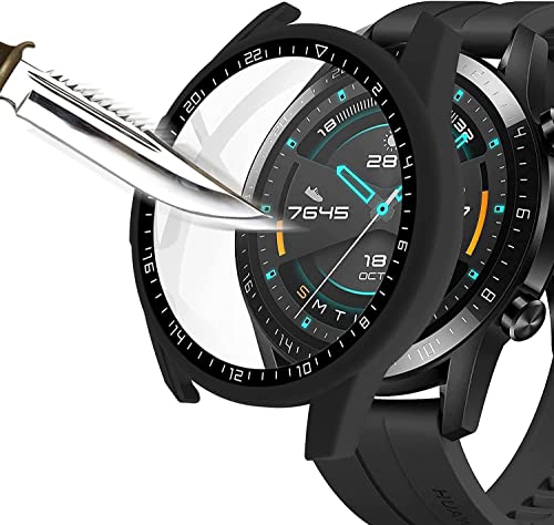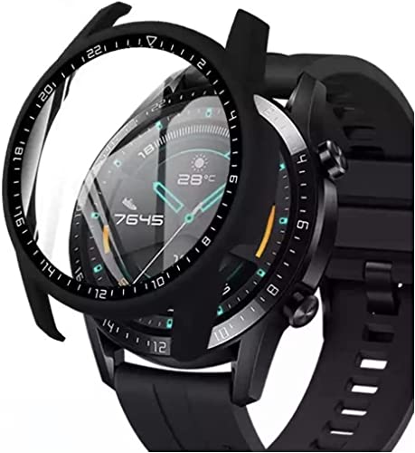 Mobilic - حافظة حماية من البولي كربونات مع زجاج مقوى لساعة هواوي جي تي 2 مقاس 46 ملم من موبايليك، اسود