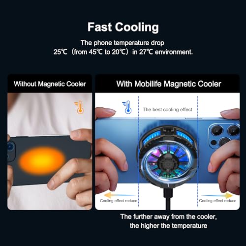 MOBILIFE Make Your Life Better - مبرد هاتف مغناطيسي بتقنية أشباه الموصلات، متوافق مع آيفون15 12/13/14/بـ 3 أوضاع تبريد، شاشة LCD، ومروحة تبريد فورية للألعاب، مناسب لآيفون واي باد وأندرويد، ردياتير موبايل من موبي لايف، أسود.