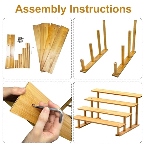 - خطوات التركيب: أولاً، قم بتثبيت 8 أعمدة من الخيزران على لوحة القاعدة باستخدام المسامير. ثم قم بتثبيت القسم العلوي. يستغرق الأمر حوالي 10 دقائق لإكمال تركيب حامل عرض الكب كيك.