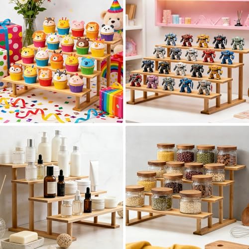 Mobpqable - حامل كب كيك خشبي من الخيزران، حامل عرض الحلوى من 4 طبقات لحفلات الزفاف وأعياد الميلاد، منظم عطور، حامل كولونيا، رف تخزين لبار القهوة، حامل الماتشا، طاولة المطبخ والحمام من موبكيبل