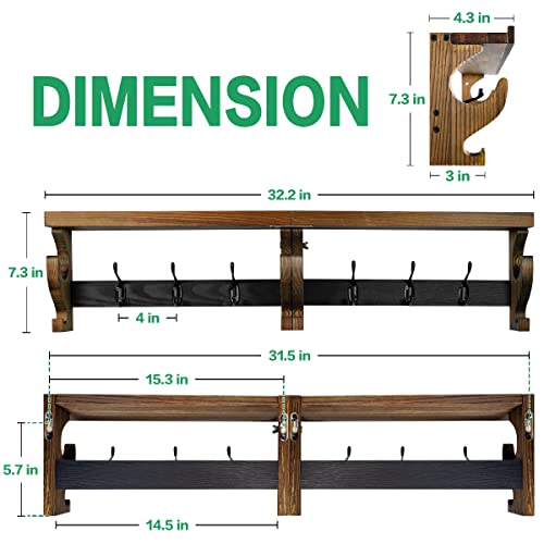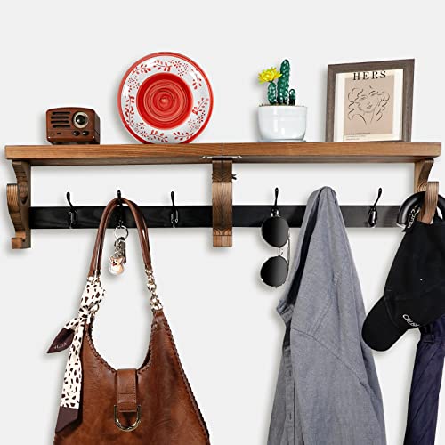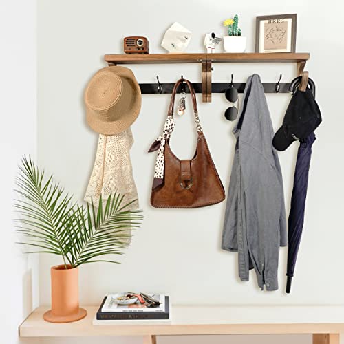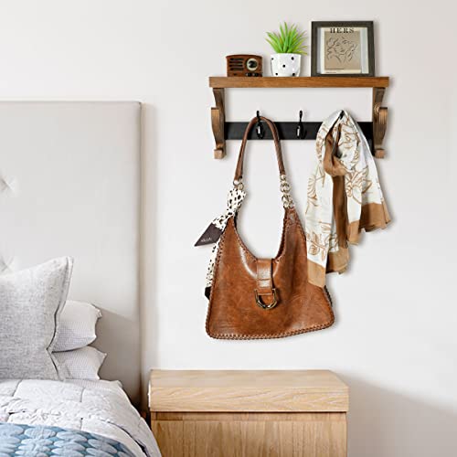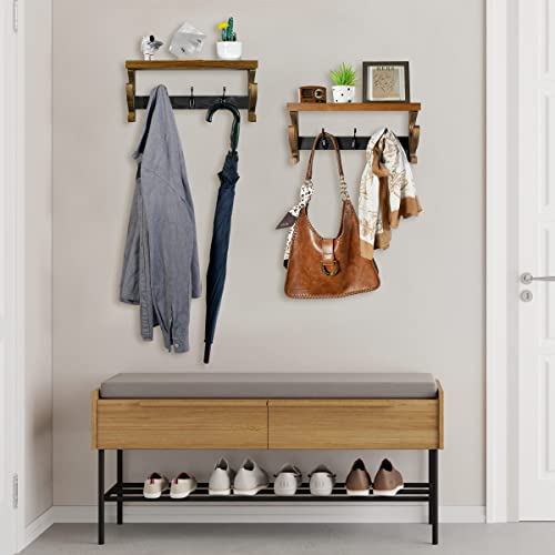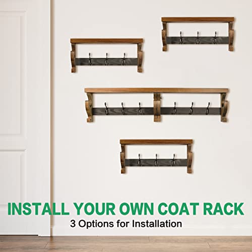 MOCAS - حامل معاطف يثبت على الحائط مع رف، عبوتان من خطافات الحائط مع رف خشبي لتعليق المعاطف، رف معطف يثبت على الحائط لديكور الحائط والمدخل وغرفة النوم وغرفة النوم، 35.0 رطل، 35.0 رطل
