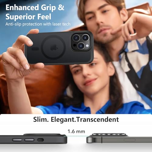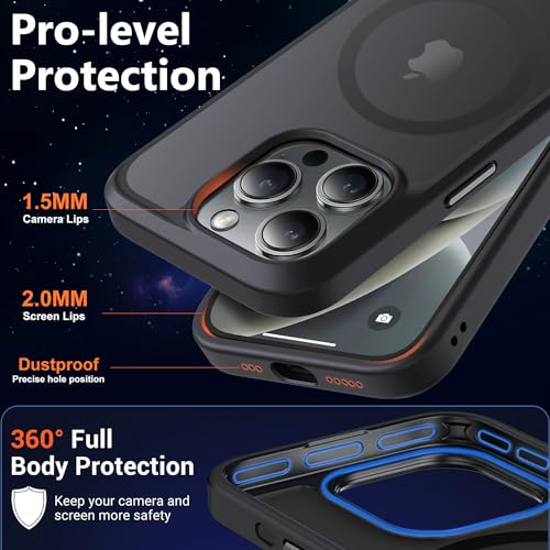 MOCCA - جراب حماية مغناطيسي قوي لموبايل ايفون 14 برو من موكا، [متوافق مع تقنية ماجسيف] [حماية من السقوط العنيف] تصميم رفيع شفاف غير لامع مضاد للصدمات، 6.1 بوصة، أسود