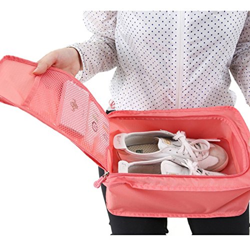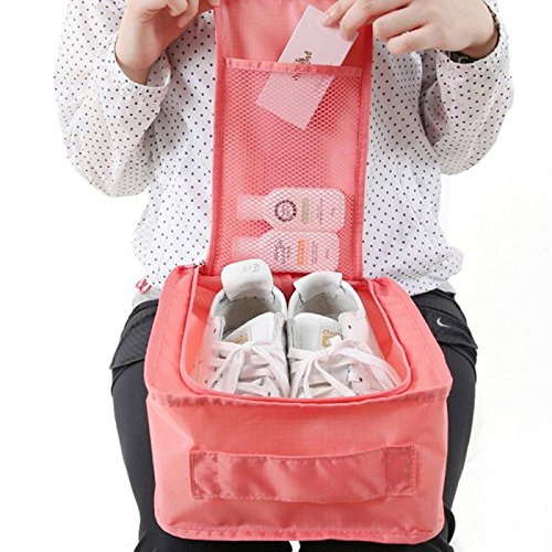 Mockery - شنطة أحذية محمولة ومقاومة للماء وقابلة للطي من موكيري، شنطة تخزين مريحة للسفر من النايلون، شنطة تنظيم سهلة الحمل، لون زهري، قطعة واحدة
