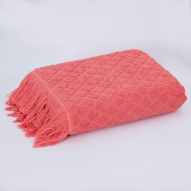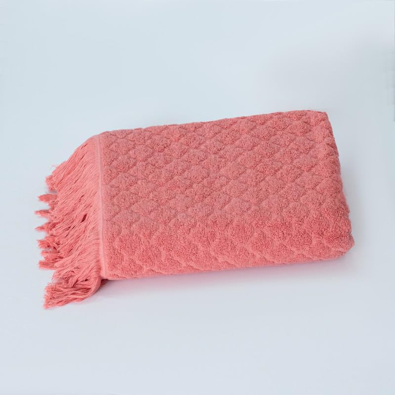 MODA HOME - فوطة متعددة الأغراض مطرزة بحواف بشراشيب مصنوعة بنسبة 100% من القطن من مودا هوم، 300 جرام، لون بطيخي، مقاس 1.00 متر× 50 سم، قطعة واحدة