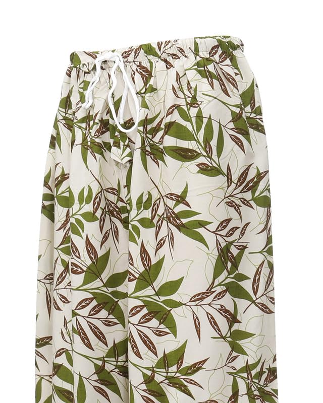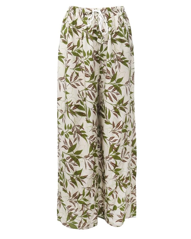 ModaMark - بنطلون قطن بخصر مرتفع وارجل واسعة مع رباط ونقوش على شكل ورق شجر نسائي من Moda Mark PA-MM1011-Parent