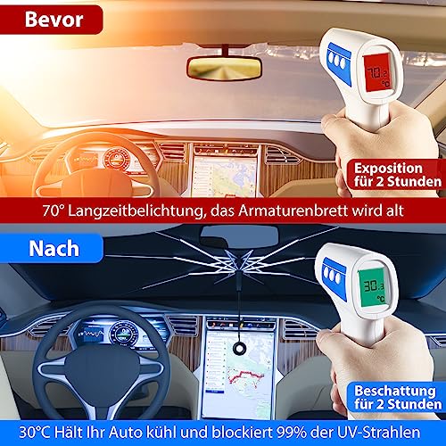 Modacraft - مظلة حماية من الشمس للزجاج الأمامي للسيارة للحماية من الأشعة فوق البنفسجية وعازلة للحرارة بمقبض حلقة سحب للزجاج الأمامي من الداخل وسريعة الفتح والطي، واقي من الشمس لمعظم السيارات من موداكرافت