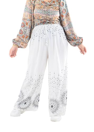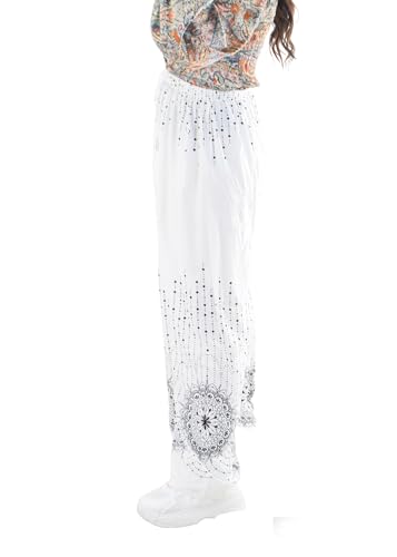 ModaMark - بنطلون قطن بنمط بأرجل واسعة وخصر مرتفع ورباط عند الخصر للنساء من مودا مارك
