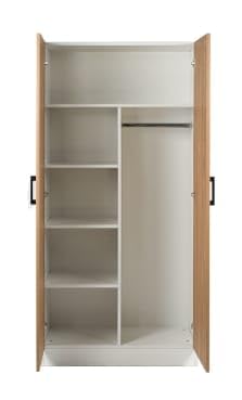 Generic - دولاب ملابس عصرية ببابين مع رفوف، دولاب تخزين لغرفة النوم مع قضيب تعليق، بتصميم متعدد الأقسام، لون خشب البلوط والأبيض
