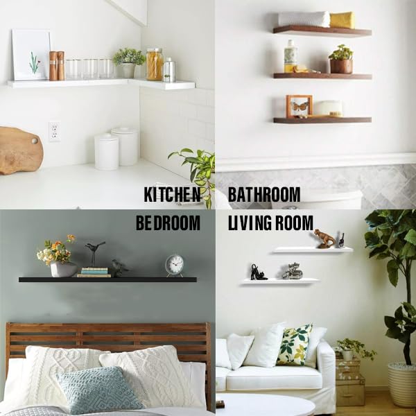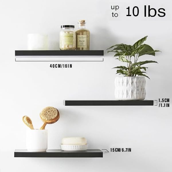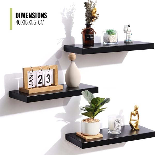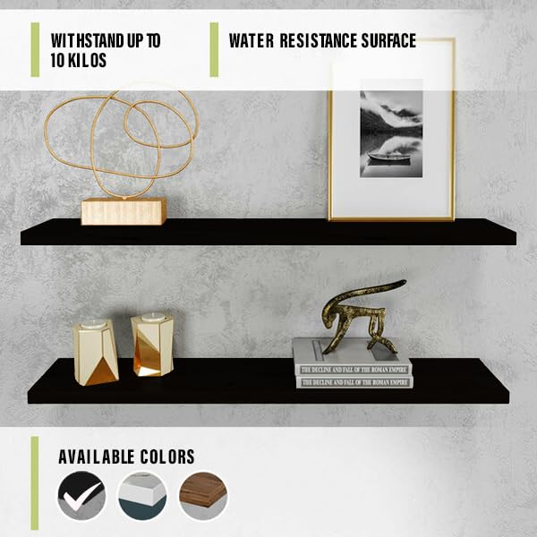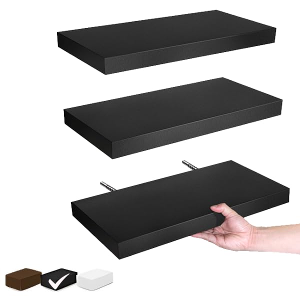 Generic - أرفف عائمة حديثة، أرفف خشبية ريفية تثبت على الحائط للحمام وغرفة النوم وغرفة المعيشة والمطبخ، رف تعليق صغير للكتب/التخزين/ديكور الغرفة بسعة 4.5 كجم (أسود)