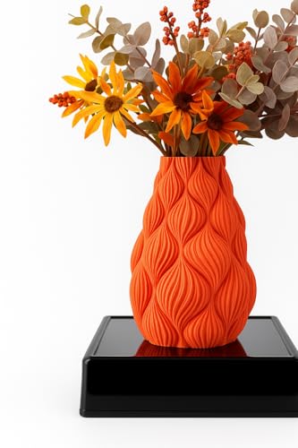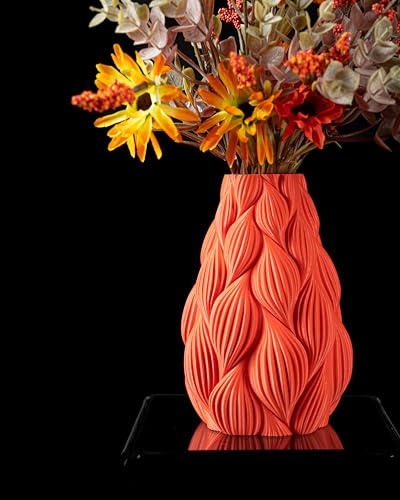 Generic - فازة ديكور عصرية مطبوعة ثلاثية الأبعاد بنمط أوراق مزخرف بلمسة نهائية برتقالية غير لامعة، فازة ديكور منزلية لغرفة المعيشة أو المكتب أو الهدايا (الزهور غير متضمنة)