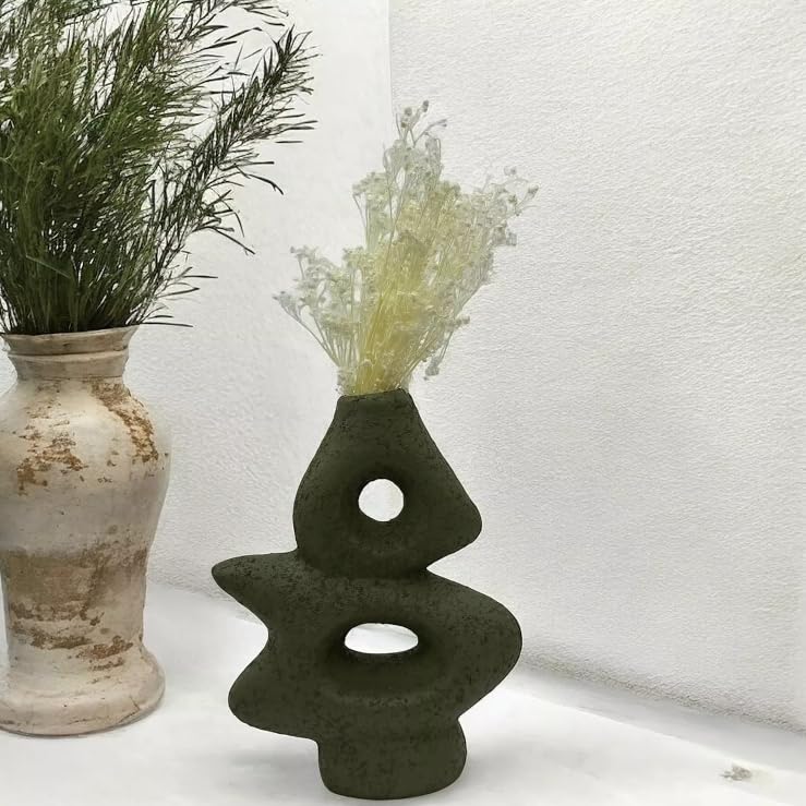 Generic - مزهرية سيراميك تجريدية حديثة، تصميم منحوت اخضر داكن، حامل زهور مزخرف