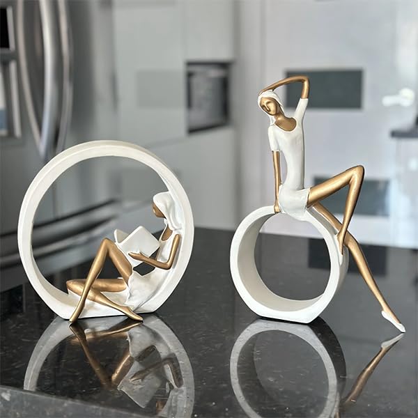Generic - مجموعة تماثيل تجريدية حديثة، تصميم دائري أبيض وذهبي، منحوتات ديكور للمنزل، 2 قطعة