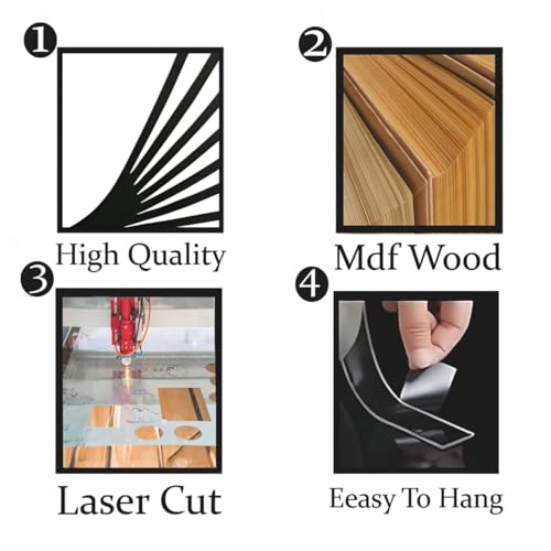Generic - لوحة فنية جدارية عصرية تجريدية من خشب ليفي متوسط الكثافة، تصميم هندسي اسود، 3 خيارات للمقاسات: كبير 89 × 80 سم، متوسط 66 × 60 سم، صغير 44 × 40 سم (متوسط)
