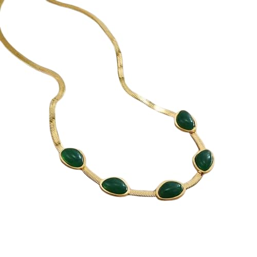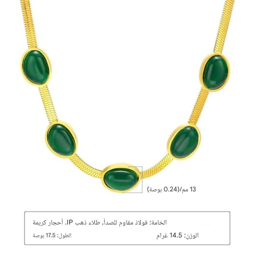 Generic - اكسسوار عصري - سلسلة أنيقة من الفولاذ المقاوم للصدأ من الذهب عيار 18 قيراط مع تصميم خرز اخضر مصقول، تمزج بين البساطة والرقي لإطلالة واثقة وفنية للمرأة المواكبة للموضة