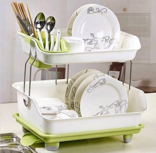 Generic - مطبقية أطباق عصرية وأنيقة بخامة عالية الجودة - 2 دور وتصميم عملي – مجفف ومنظم أدوات المائدة لتنسيق المطبخ وتوفير المساحة