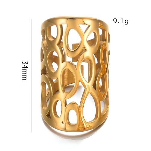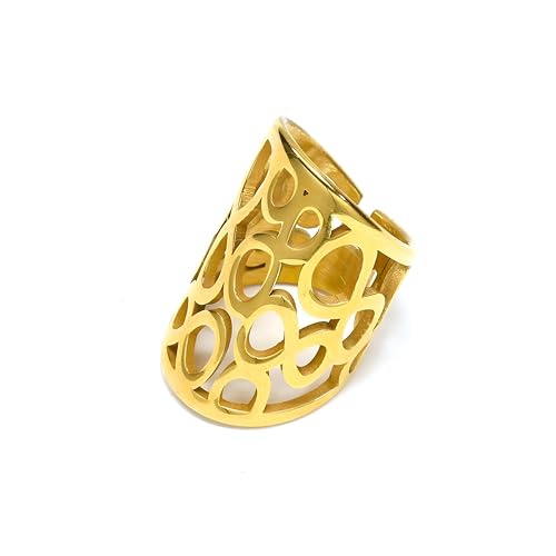 Generic - سوار عصري - خاتم ذهبي بتصميم هندسي دائري، نمط مفتوح قابل للتعديل، قطر 34 ملم وهيكل خفيف الوزن 9.1 غرام.