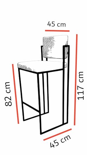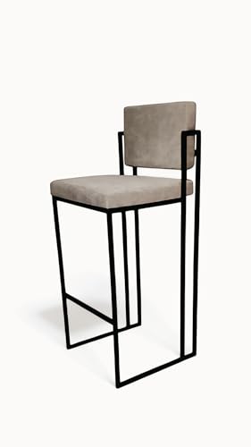 Generic - كرسي بار حديث بقاعدة من الشمواه الرمادي، وهيكل من الفولاذ الأسود، بارتفاع 82 سم وعرض 45 سم