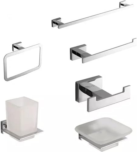 Generic - طقم إكسسوارات الحمام الحديث، ٦ قطع، كروم، يشمل حامل المناشف وحامل المنشفة الدائري وحامل ورق التواليت وحامل الصابون وحامل كوب وصحن الصابون