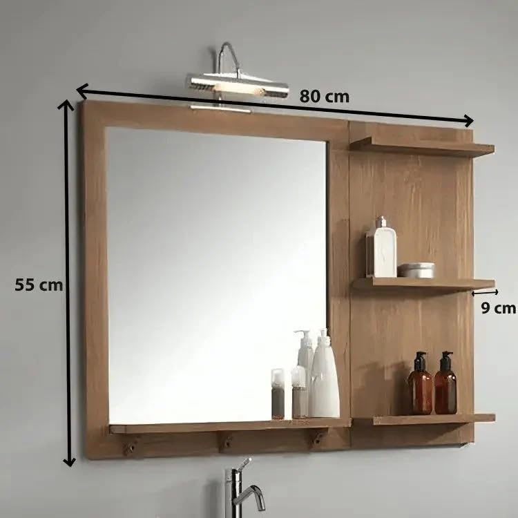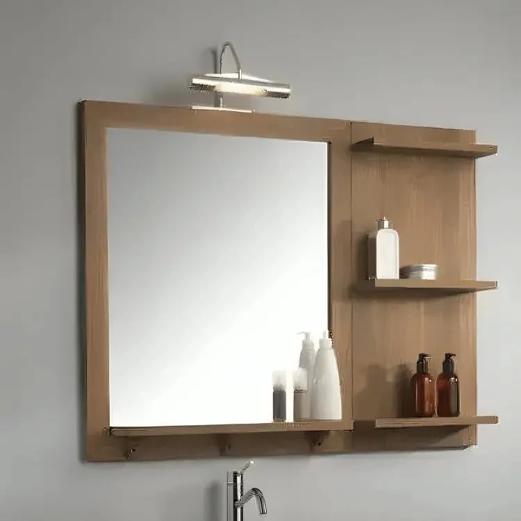 - مزايا التصميم: مجموعة دولاب مراية حمام عصرية بإطار من الخشب الطبيعي وإضاءة عرض مدمجة، مثالية للحمامات العصرية.