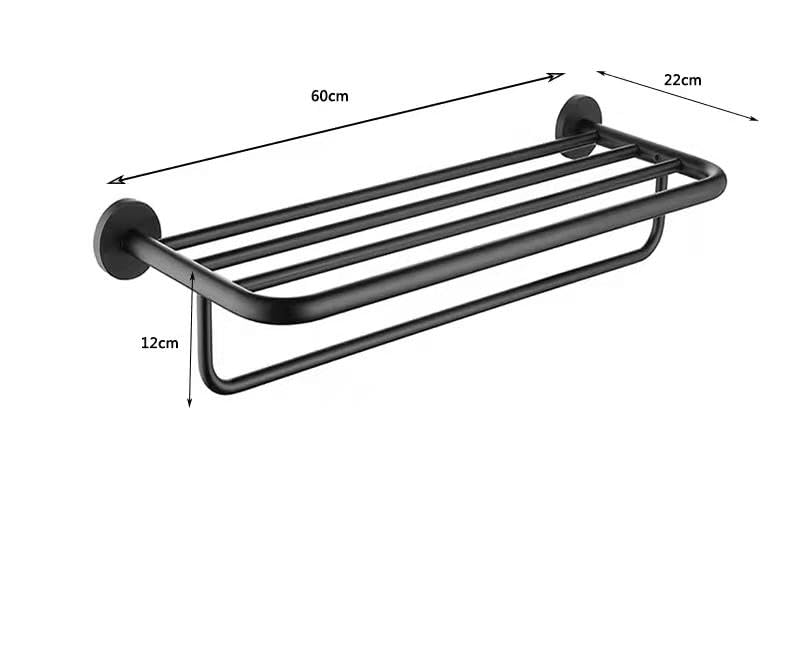 - الأبعاد: يبلغ طول رف المناشف الفاخر 60 سم وعمقه 22 سم وارتفاعه 12 سم، مما يوفر مساحة واسعة لمناشف متعددة