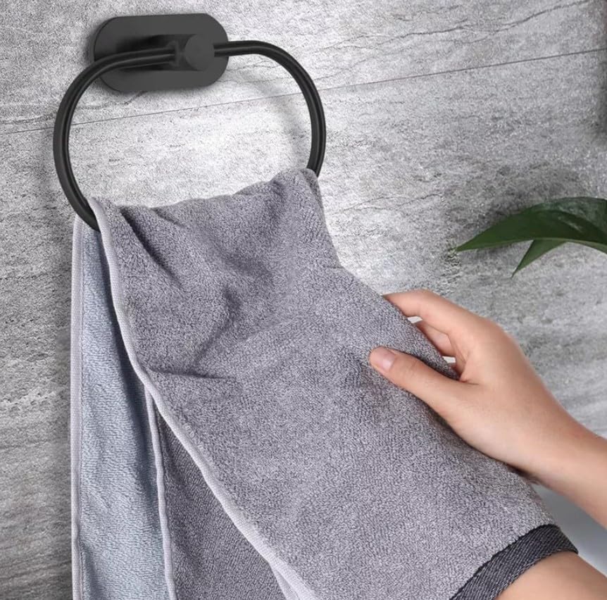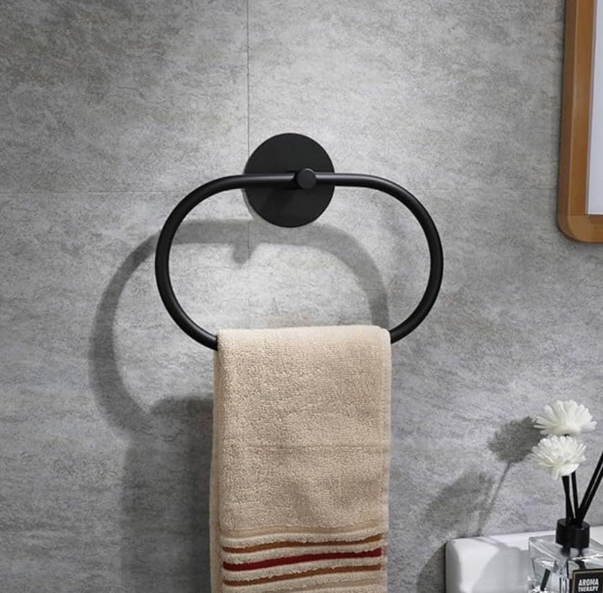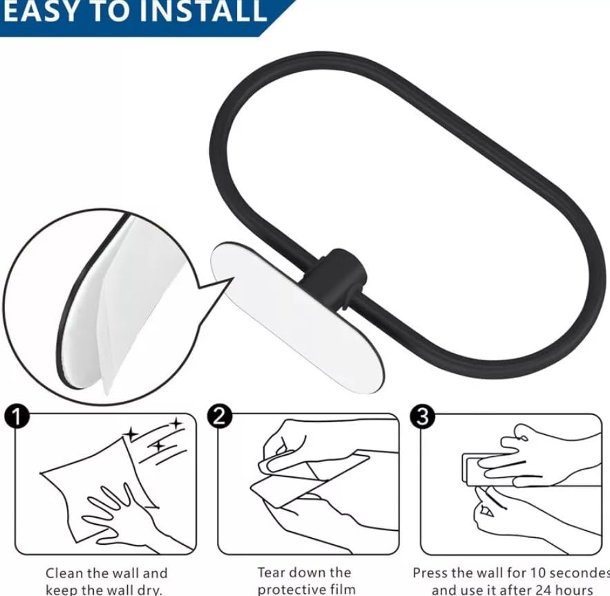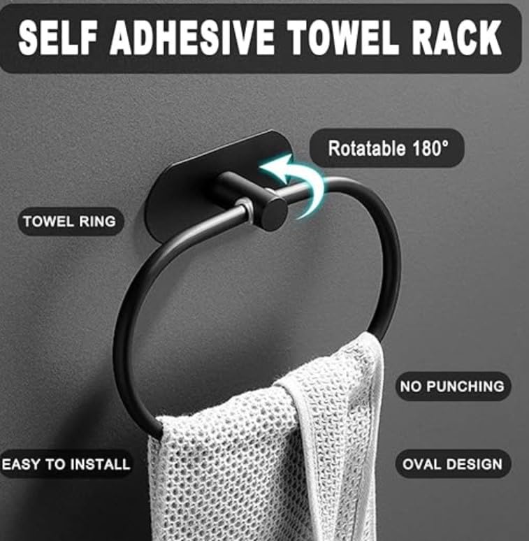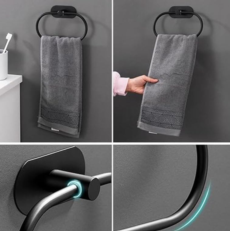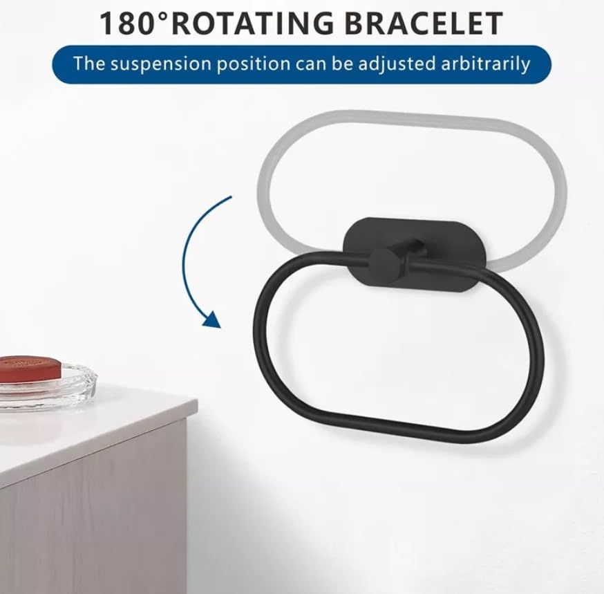 Generic - حامل حلقي لمنشفة الحمام الحديث، دوران 180 درجة، حامل ذاتي اللصق على الحائط، اسود