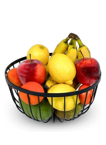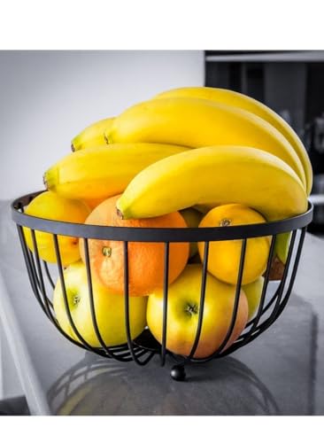 generic - طبق فاكهة اسود عصري من الستانلس ستيل بقاعدة خشبية عالية الجودة، حجم كبير ومناسب.