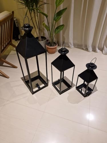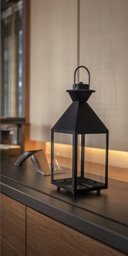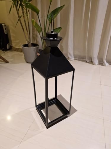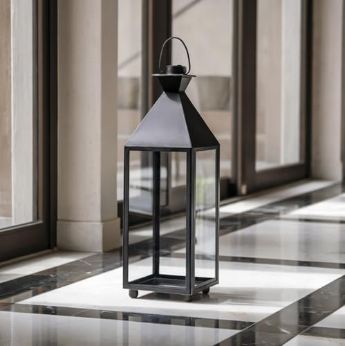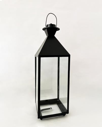 Generic - فانوس أرضي عصري مصنوع من الصلب والزجاج بلون أسود ومناسب كحامل إضاءة للديكور الداخلي والخارجي (متوسط)