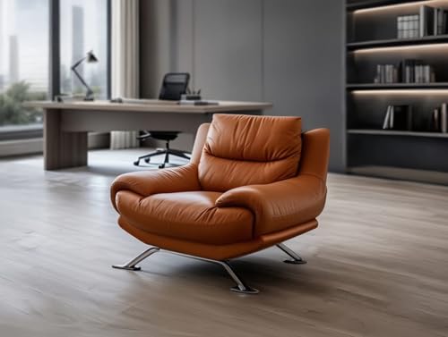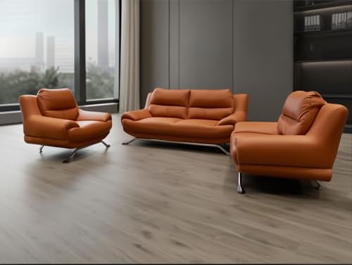 Generic - طقم كنب مكتب من الجلد البني بتصميم عصري وقاعدة معدنية وأريكة من الكروم وكرسيين للمكتب