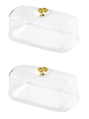 Generic - طبق زبدة حديث بمقبض ذهبي - حافظة زبدة اكريليك مع غطاء شفاف للمطبخ والطاولة والهدايا (شفاف، عبوتان)