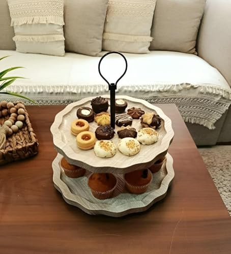 - تصميم أنيق من طبقتين يرفع من عرض الحلوى مع حامل خشبي عصري، مما يضيف على الفور لمسة من الفخامة إلى أي احتفال - سواء كان عيد ميلاد أو زفاف أو تجمع عائلي أو شاي الأحد. يخلق هيكلها متعدد الطبقات عمقًا بصريًا ورقيًا، مما يحول الحلوى البسيطة إلى قطع مركزية من الأناقة.