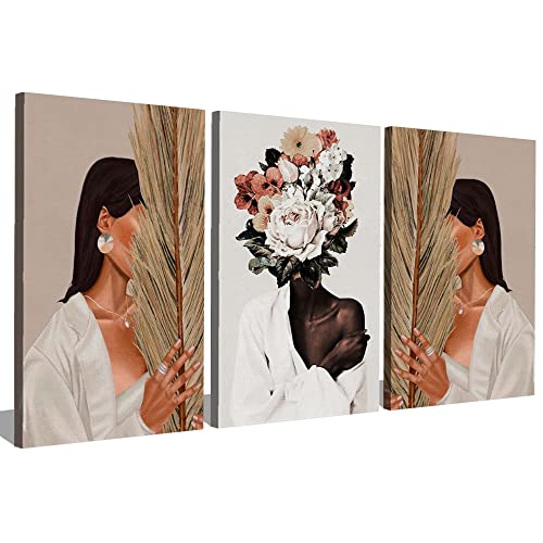 Generic - حبر آرت 3 لوحات من خشب الكانفاس مودرن للديكور 40x60x2 الوان متعددة S3TC4060-0363