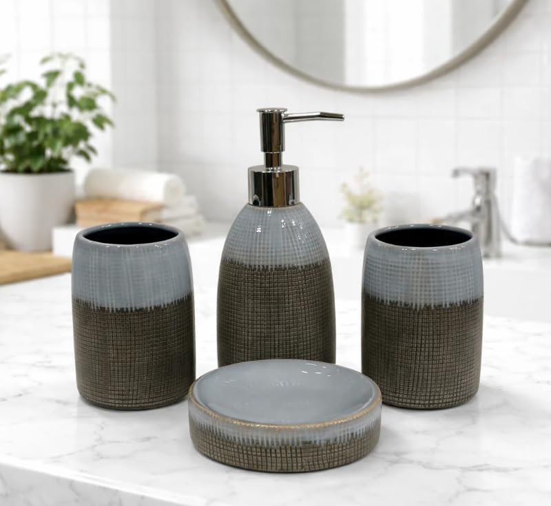 Generic - طقم إكسسوارات حمام سيراميك عصري - 4 قطع رمادي متدرج مع مضخة فضية