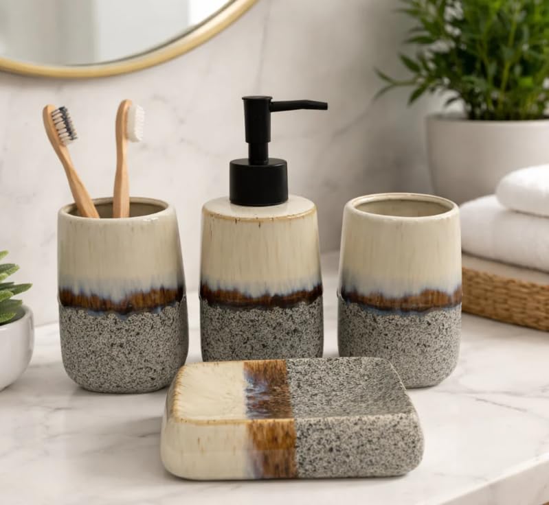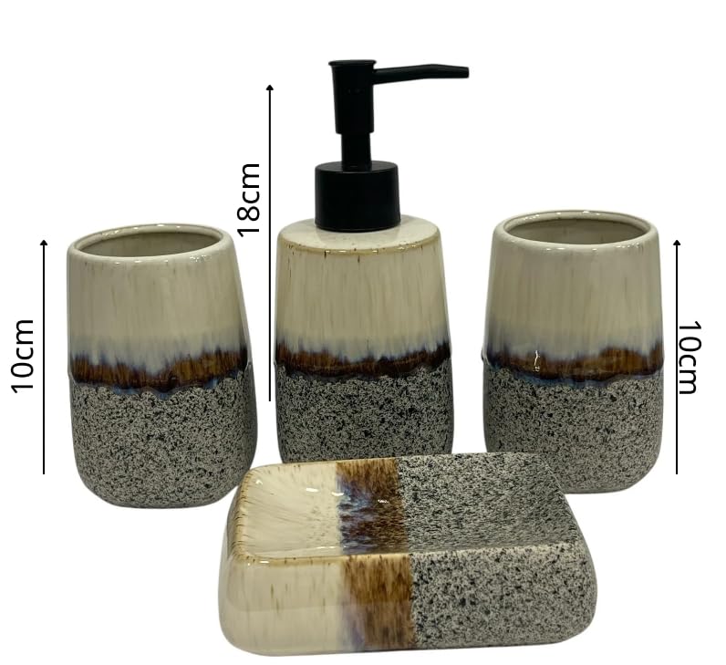 Generic - طقم إكسسوارات حمام سيراميك عصري - 4 قطع بتصميم مستوحى من الجرانيت مع تدرج لوني كريمي