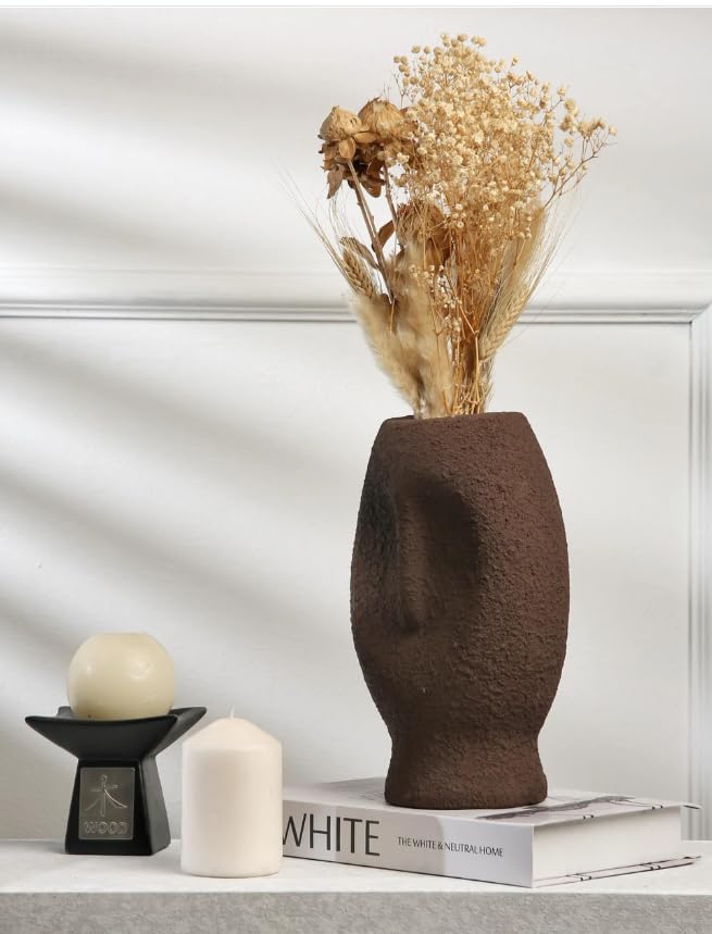 Generic - مجموعة مزهريات سيراميك عصرية 35 سم، مزهريات مزخرفة بلون بني غير لامع للزهور المجففة، 3 قطع لديكور غرفة المعيشة