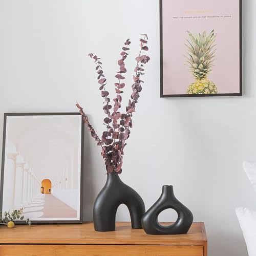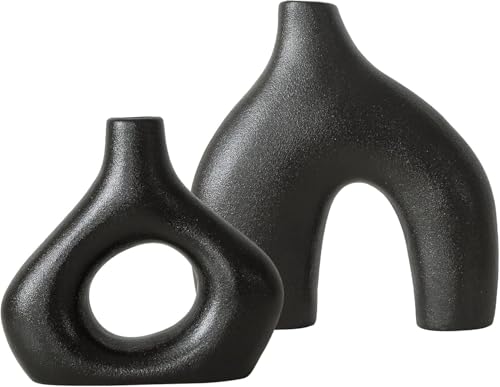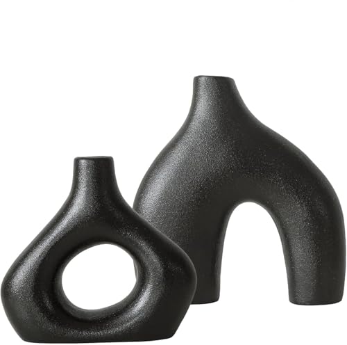 Generic - مزهريات سيراميك عصرية، طقم قطعتين بتصميم مجوف، لون أسود مطفي، للديكور المنزلي وعرض الزهور