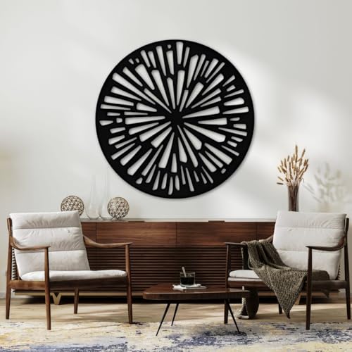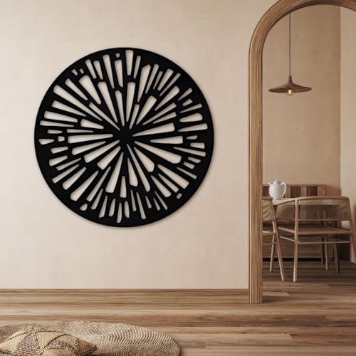 Generic - لوحة فنية جدارية دائرية عصرية من خشب ام دي اف بلون اسود، تصميم صن برست، متوفرة في 3 مقاسات (40-80 سم)، ديكور منزلي معاصر لغرفة المعيشة (مقاس M)