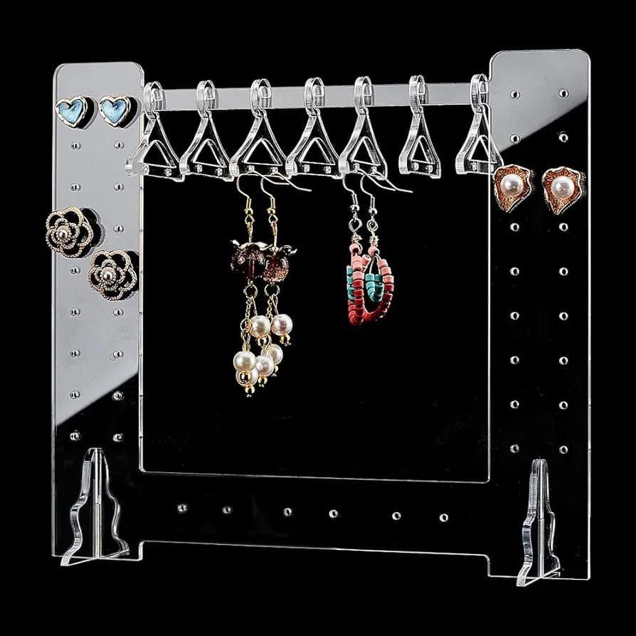 AREXOL - حامل منظم مجوهرات اكريليك شفاف عصري مع 5 خطافات تعليق للاقراط والقلائد والاساور والخواتم الانيقة، عرض تخزين منزلي